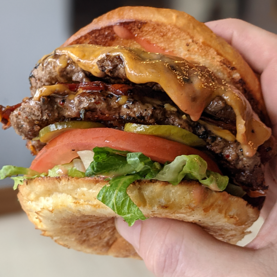 Two Alberta Beef Smash Patties, Cheddar Cheese, Bacon, Fresh Tomato, Pickles, Lettuce and Fence & Post Sauce served on a House-Made Burger Bun.