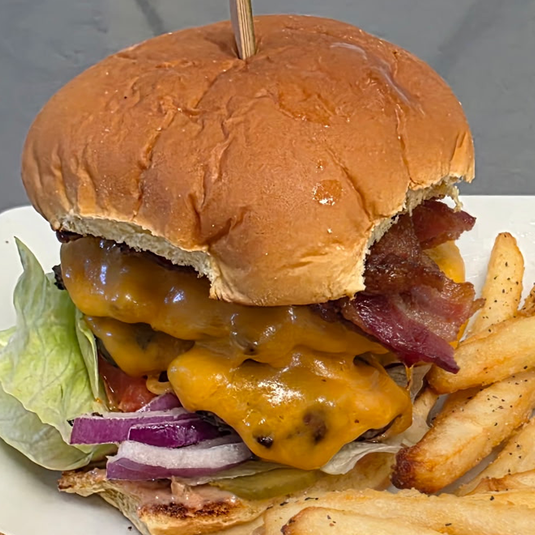 Chefs Special Sauce, Pickle, Onions, Lettuce and Tomato.