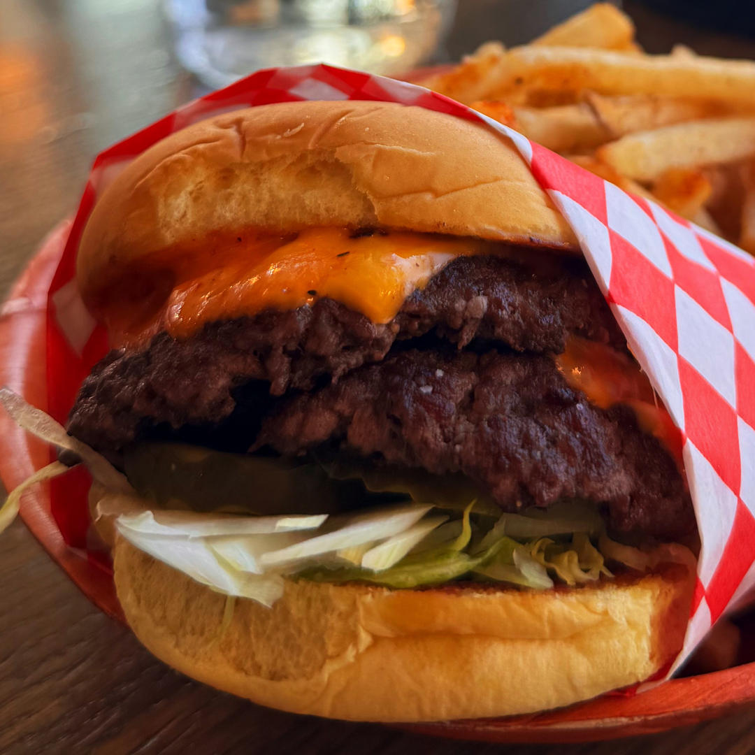 Two Alberta Beef Patties, American Cheese, Onion, Pickles, Lettuce and Burger Sauce.