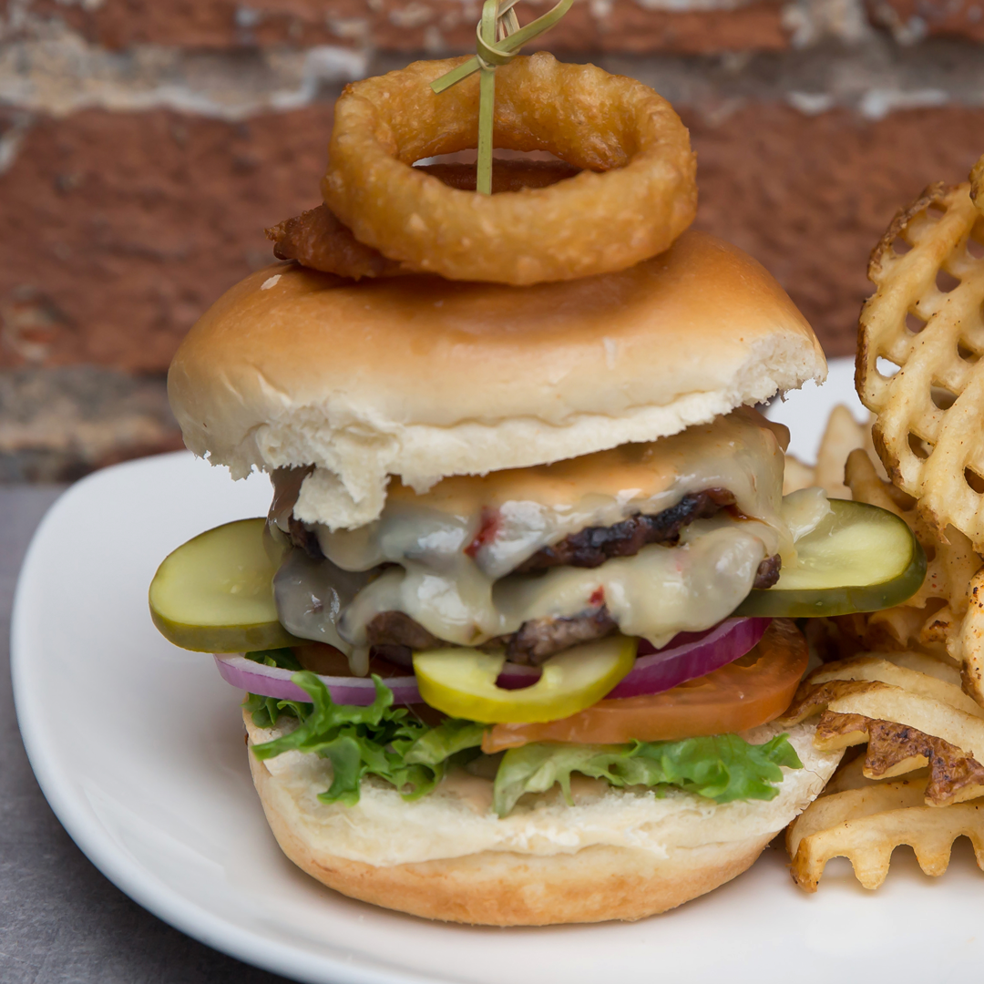 Fresh Angus Beef Patties, double stacked with Irish Bbq Sauce, Jalapeno Jack Cheese, Onion Rings, Lettuce, Tomato, Onions, Pickles, Soft Gilled Bun and our House Tipperary Sauce.