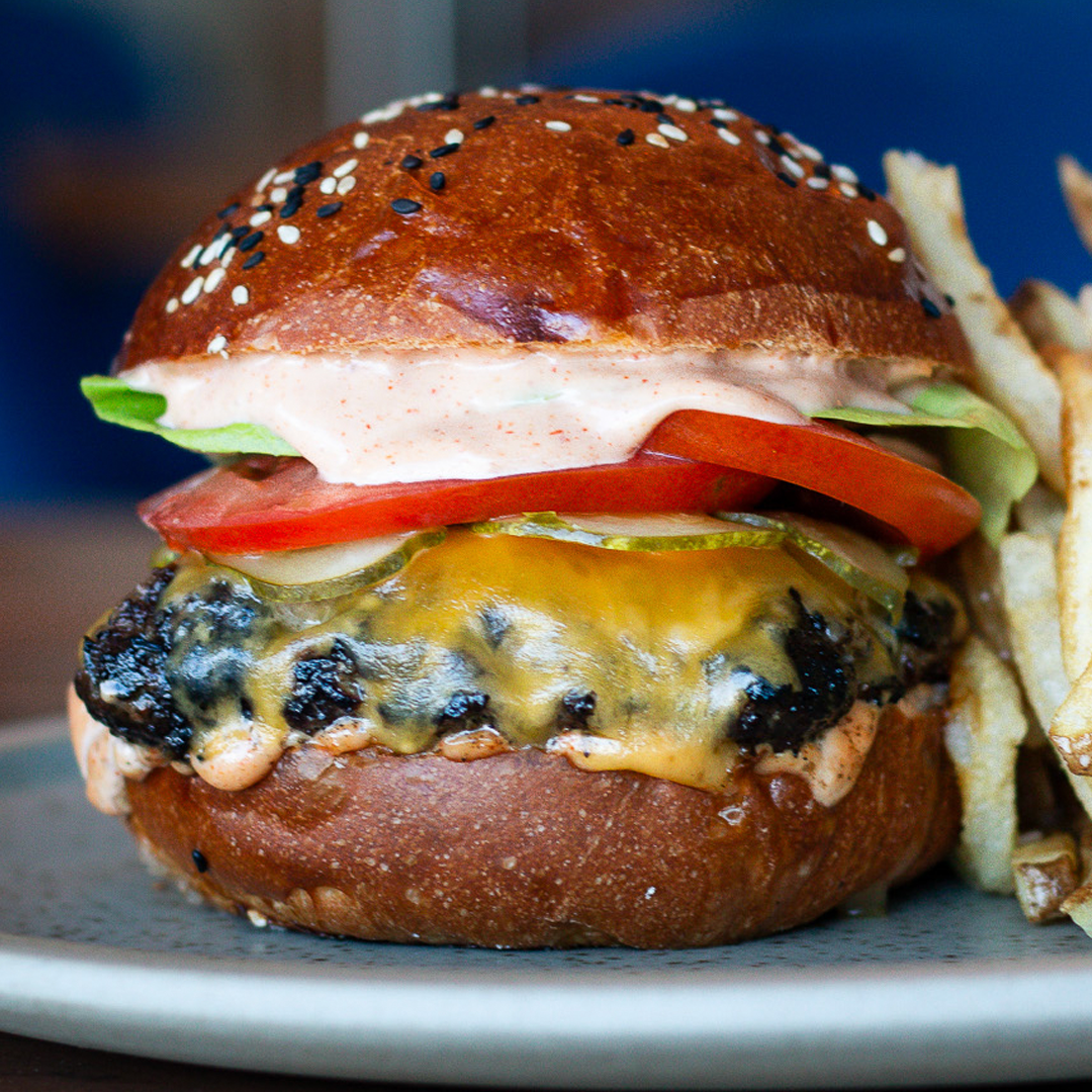 Grilled Angus Reserve Beef, Burger Sauce, Leaf Lettuce, Pickle, Beef Steak Tomato, Cheese Boutique Aged Cheddar.