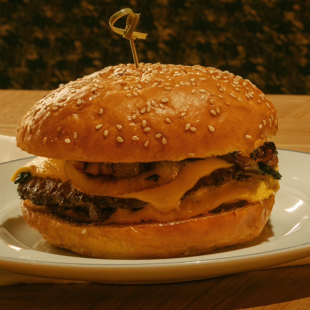 Two Canadian Beef Patties, American Cheese, Pickles, Onions and Dijonnaise served on a Toasted Sesame Bun.
