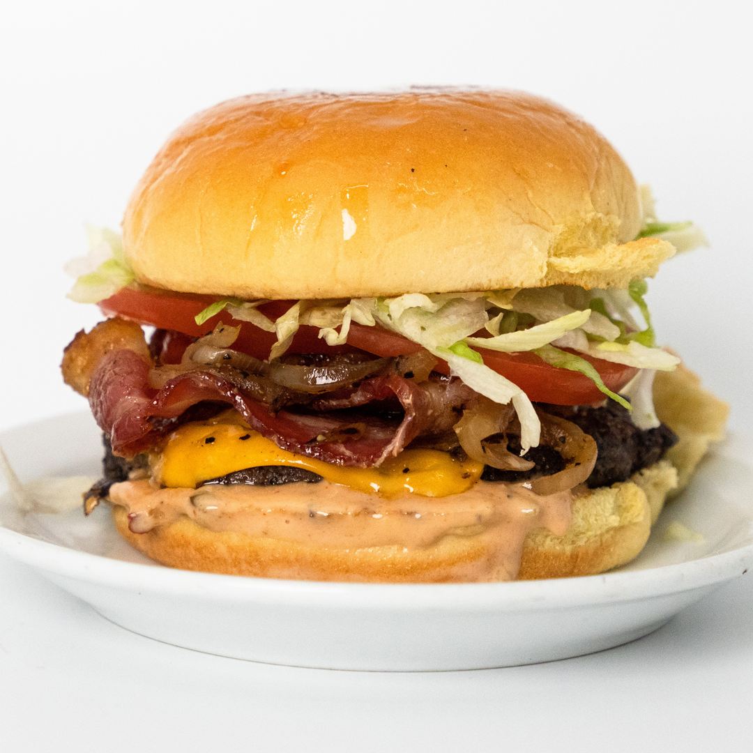6oz Beef Patty, Cheddar, Bacon, Lettuce, Tomato, Sautéed Onions, Pickles, Eddie Sauce, Toasted Bun.