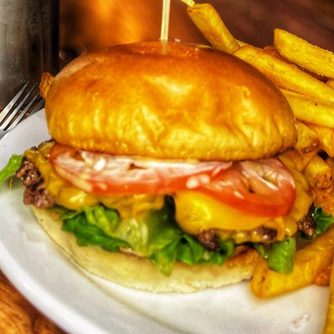 100% Beef Chuck Patty, Brioche Bun, Burger Sauce, Tomato, Onion, Lettuce, Pickle.