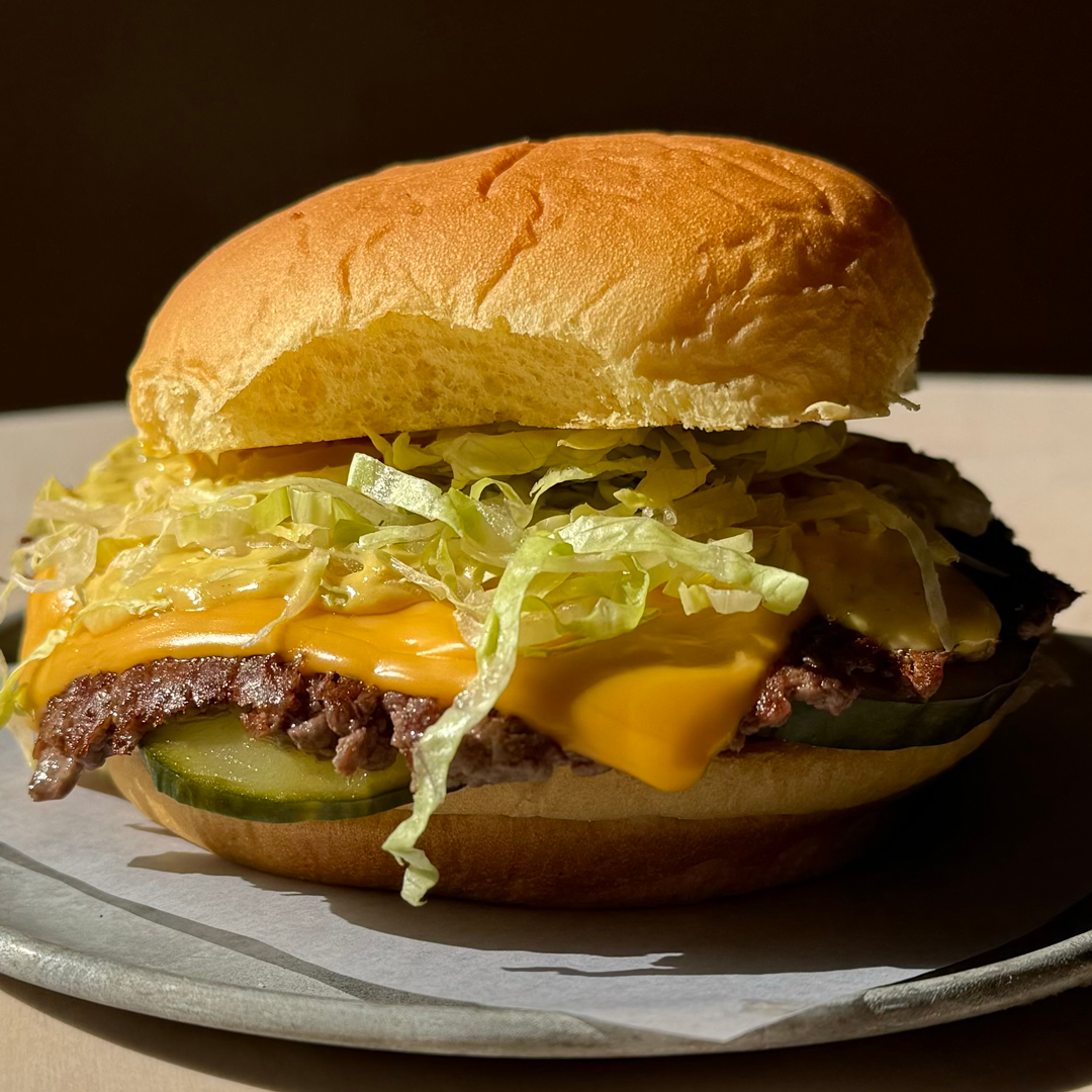 A Fresh Ground AAA Chuck Smash Patty, Mcburger Sauce, American Cheese, Pickles, Iceberg Lettuce, and Griddled Onions served on a Potato Roll.