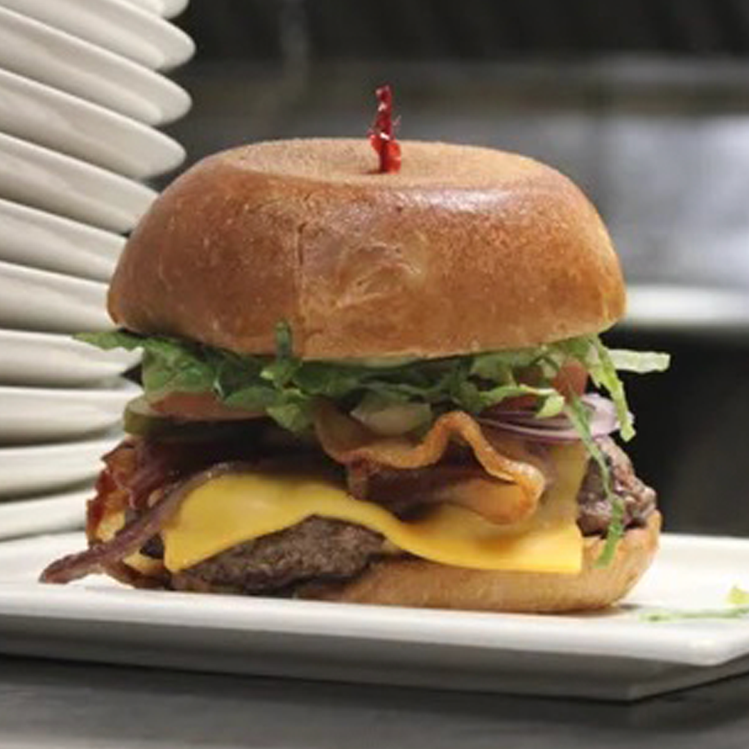 100% Canadian Prime Beef, House-Made Aioli, Lettuce, Tomato, Onions, Pickle on a Brioche Bun.
