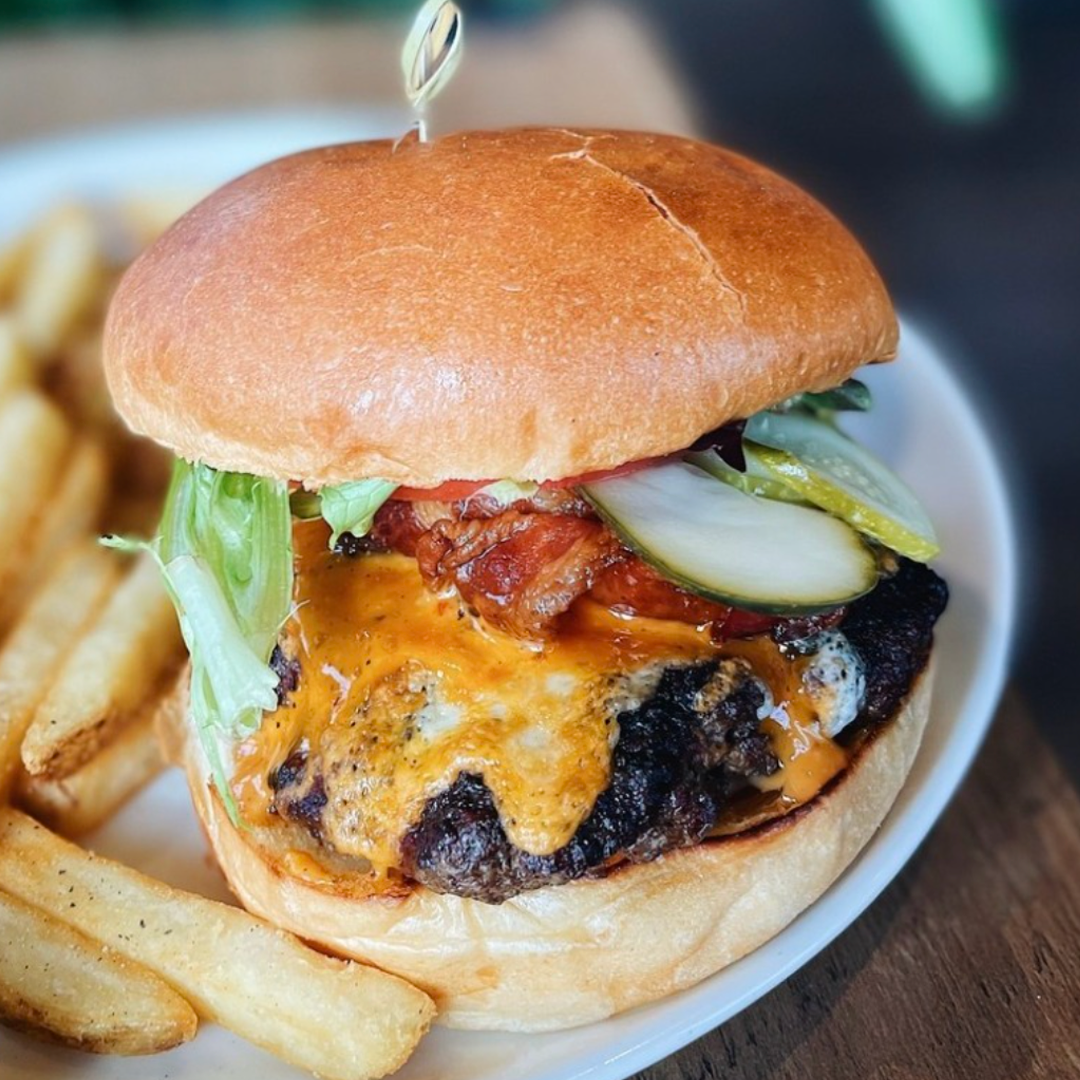 Island Beef, Lettuce, Tomato, Pickles and Caramelized Onions. Topped with Cheese, Bacon, and The Local Sauce. Served on a Brioche Bun.