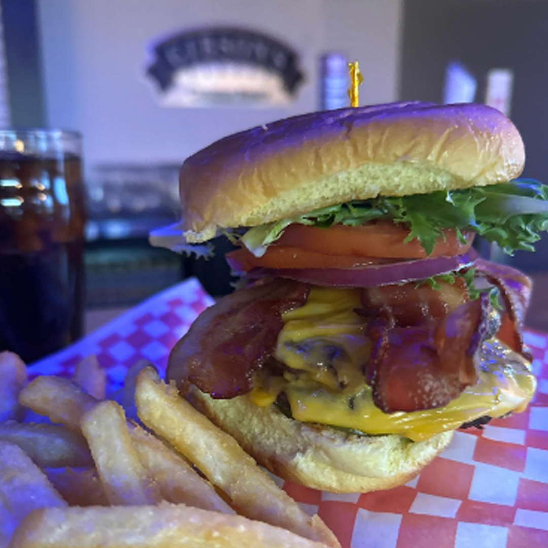 Two 6oz fresh house-made 100% Canadian Beef Patties, Bacon, Lettuce, Tomato, Onion and Cheese with Chef’s Sauce.